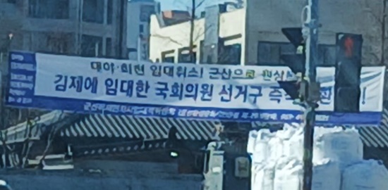 ÀÌ È¥¶õ½º·¯¿òÀ» ´ëº¯ÇÏµí ±º»êÁö¿ª °÷°÷¿¡´Â ½Ã¹Î´Üü°¡ ³» °Ç ¡¸¡®´ë¾ß ȸÇö ÀÓ´ë Ãë¼Ò! ±º»êÀ¸·Î ¿ø»ó º¹±Í!¡¯ ¡®±èÁ¦¿¡ ÀÓ´ëÇÑ ±¹È¸ÀÇ¿ø ¼±°Å±¸ Áï°¢ ¹Ýȯ!!¡¯¡¹À» Ã˱¸ÇÏ´Â Çö¼ö¸·ÀÌ °É·È´Ù.