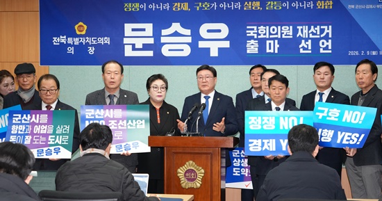 ¹®½Â¿ì ÀüºÏƯº°ÀÚÄ¡µµÀÇȸ ÀÇÀåÀÌ "À§±âÀÇ ±º»êÀ» ´Ù½Ã ÀÏÀ¸ÄÑ ¼¼¿ì°Ú´Ù¡±¸ç ¿À´Â 6¿ù 3ÀÏ Áö¹æ¼±°Å¿Í ÇÔ²² ½Ç½ÃµÇ´Â ±º»ê¡¤±èÁ¦¡¤ºÎ¾È°© ±¹È¸ÀÇ¿ø Àç¼±°Å Ã⸶¸¦ °ø½Ä ¼±¾ðÇß´Ù.